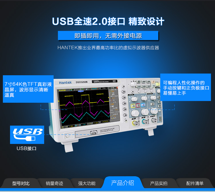 汉泰DSO5102B双通道台式数字示波器100M示波器数字存储示波器