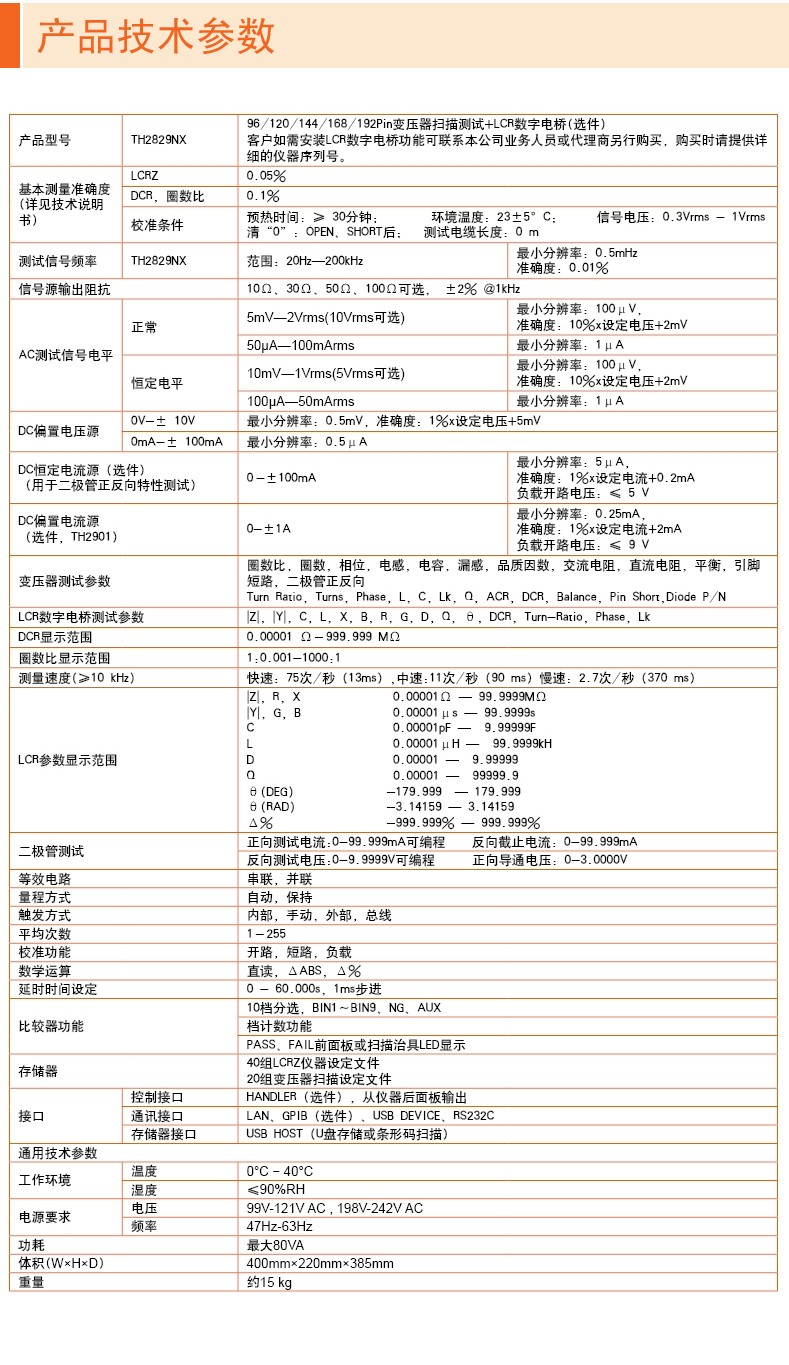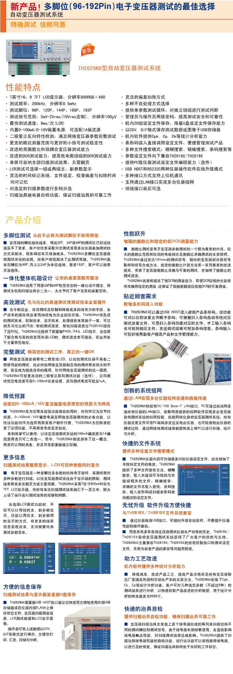 常州同惠TH2829NX变压器综合测试仪_多脚位96-192Pin测试仪