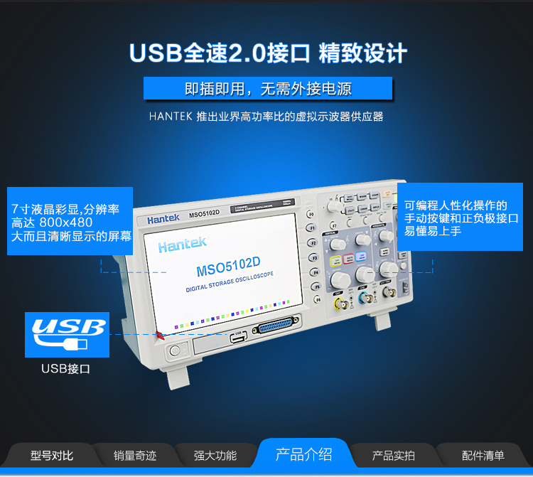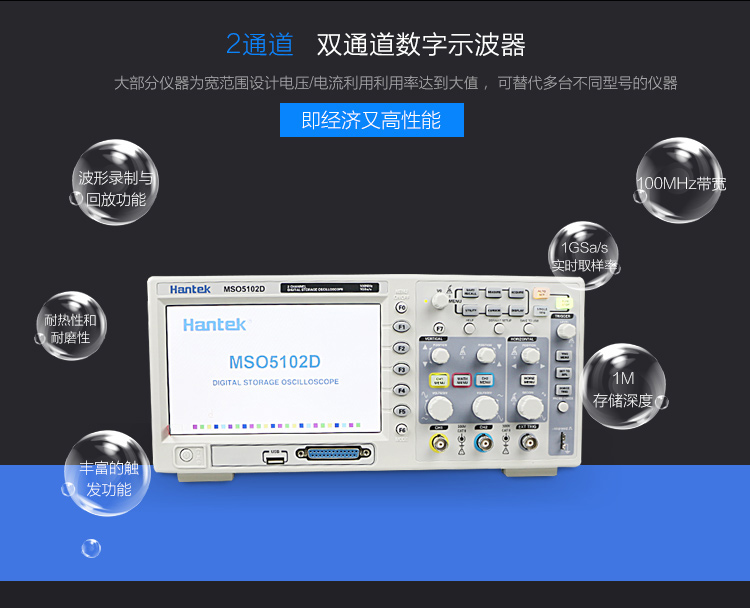 汉泰MSO5102D/5062D/5202D双通道100M数字示波器带逻辑分析仪