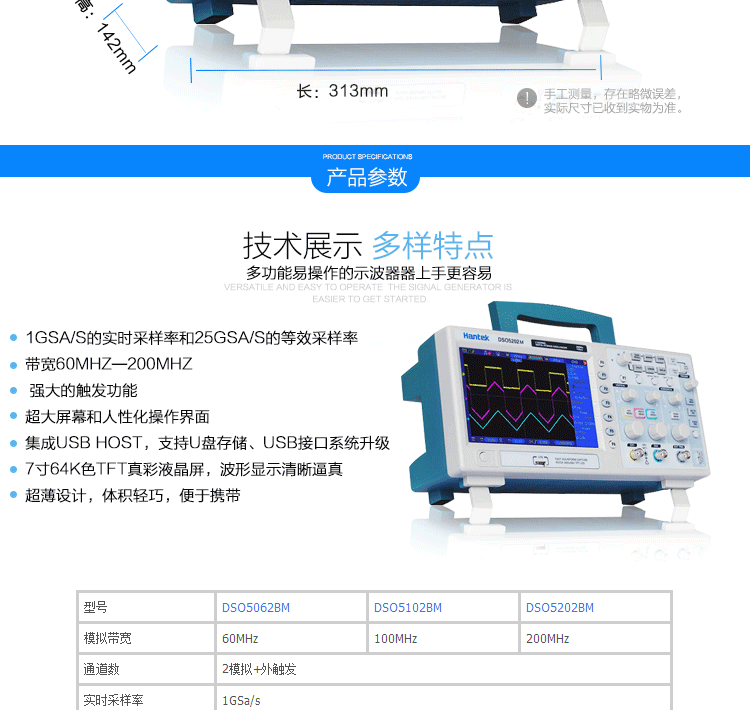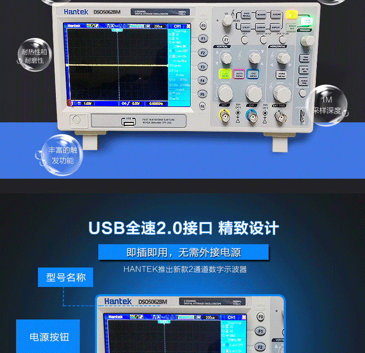 青岛汉泰DSO5062BM/DSO5102BM/DSO5202BM双通道数字示波器