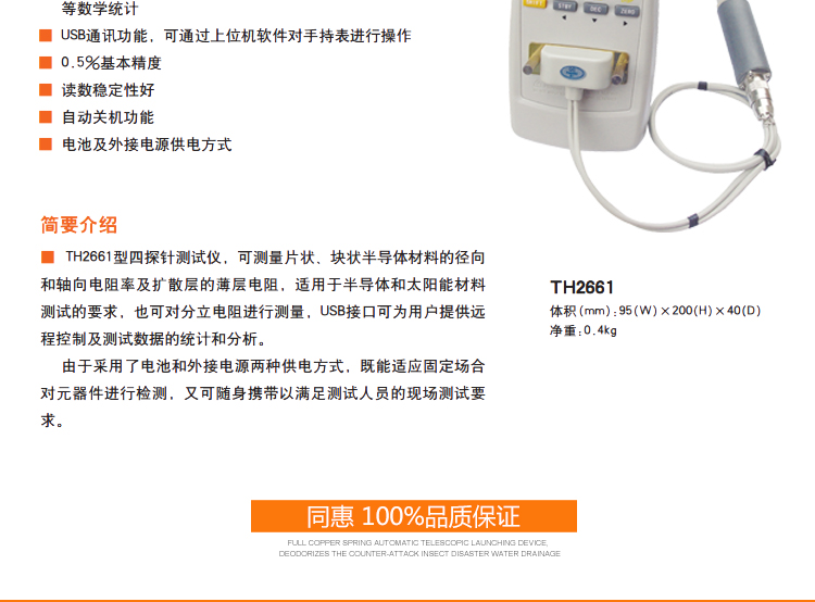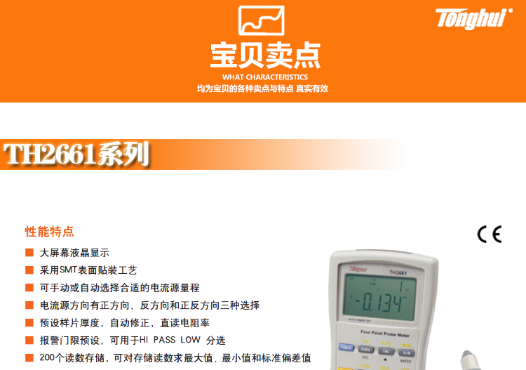 同惠TH2661手持式四探针测试仪 USB通讯带关机功能 自动报警