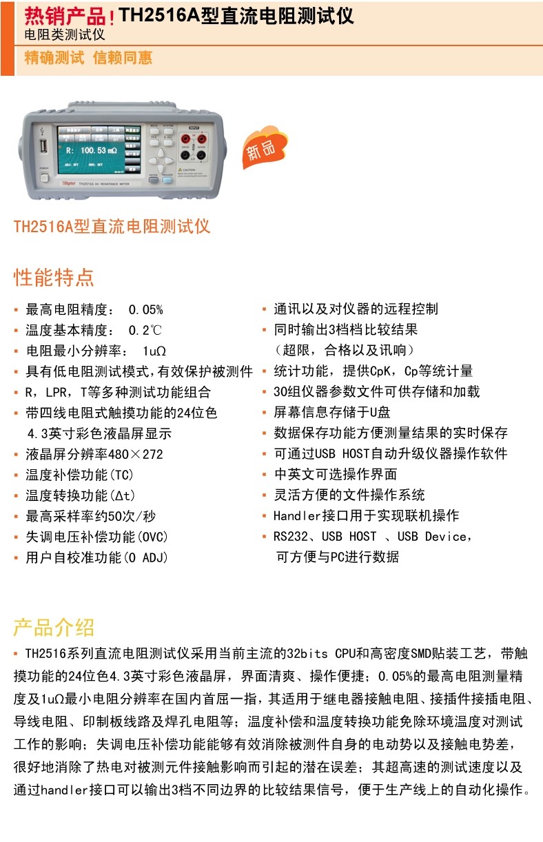 同惠TH2516直流低电阻测试仪TH2516A测量仪TH2516B电阻仪原装