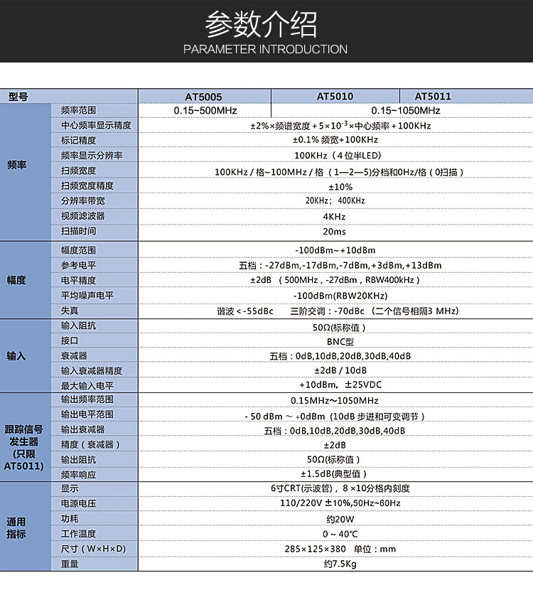 国睿ATTEN/安泰信AT5011频谱分析仪带跟踪信号发生器/1G数字存