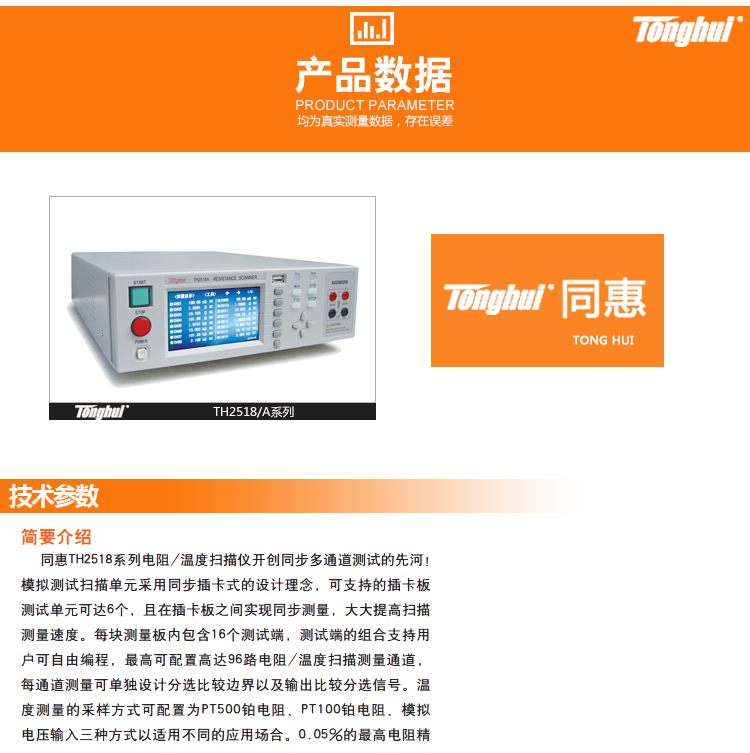 同惠TH2518 TH2518A同步多通道测试 插卡式 电阻温度扫描仪