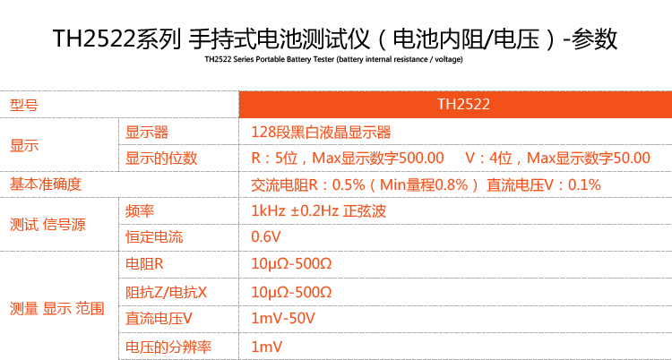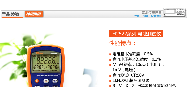 同惠手持电池测试仪TH2522电池内阻测试仪电压电阻交流测量仪