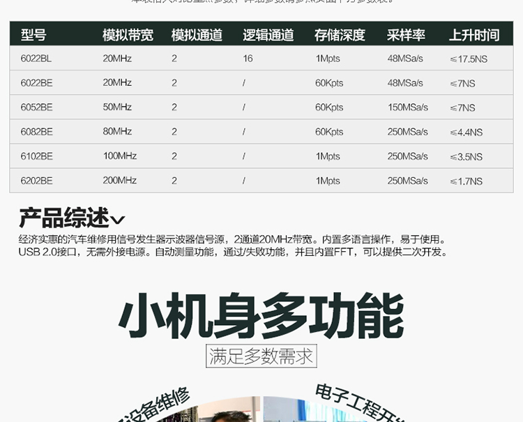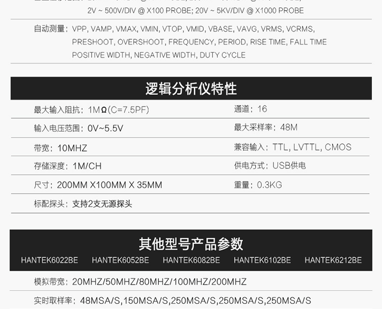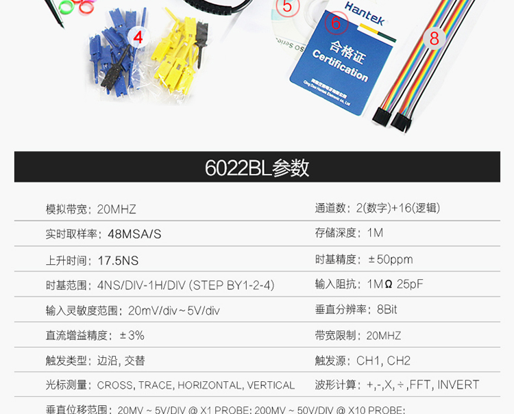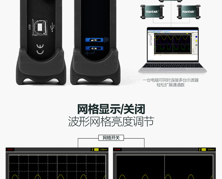 汉泰Hantek6022BE虚拟示波器20M带USB逻辑分析仪6022BL示波器 Ha