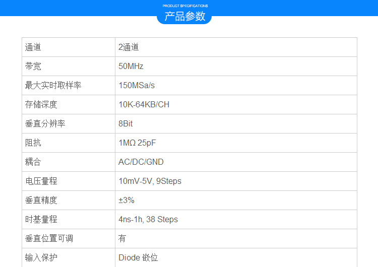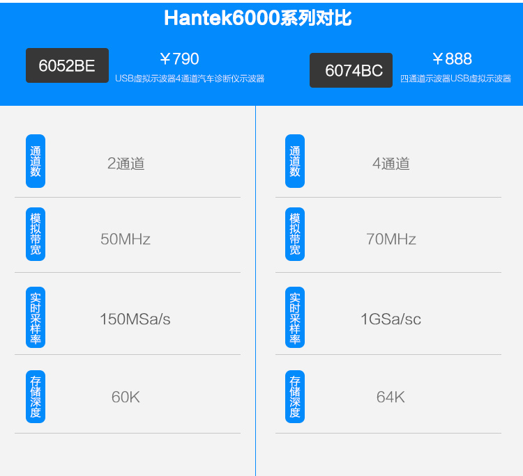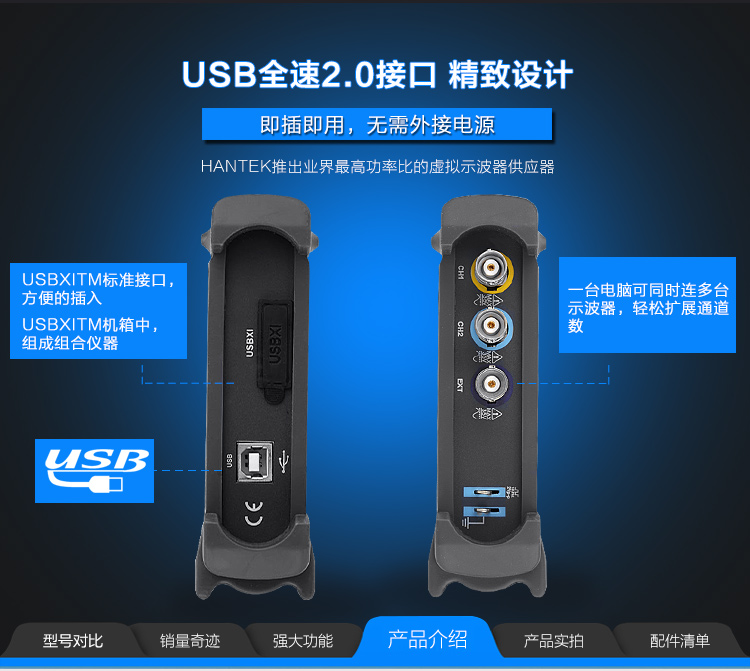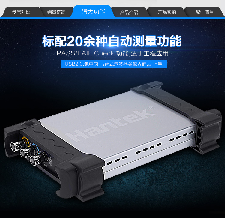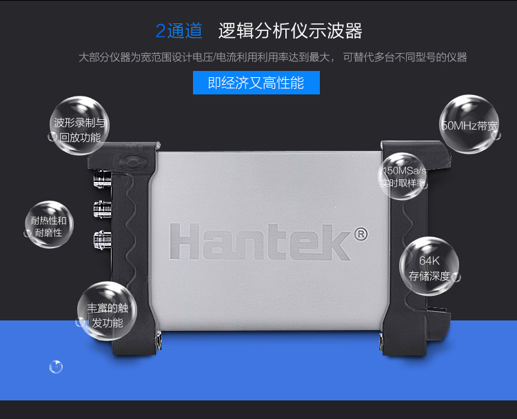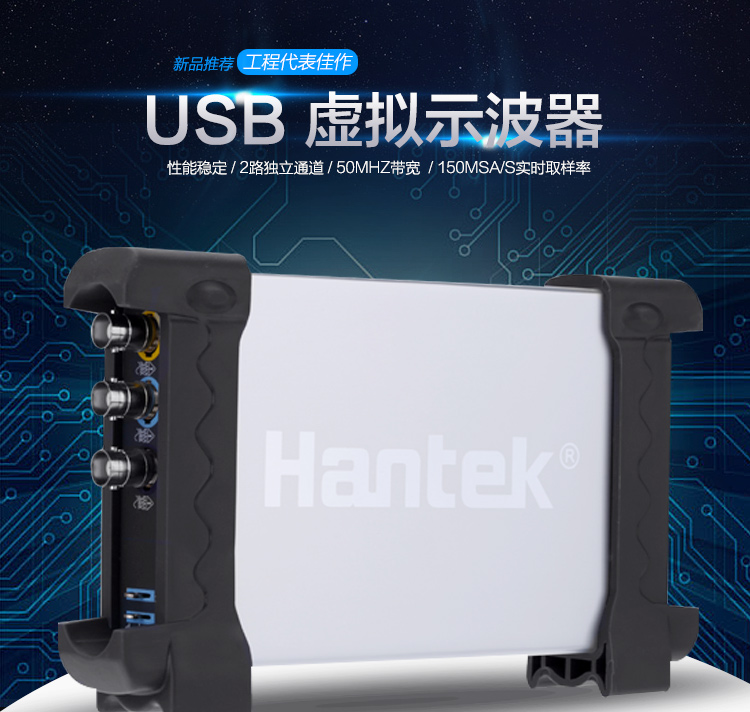 汉泰Hantek6052BE USB虚拟示波器双通道50MHz带宽150MS/s采样率