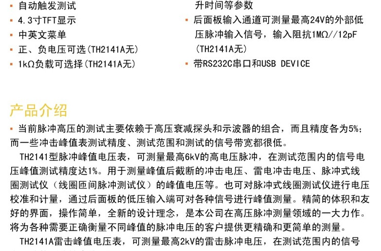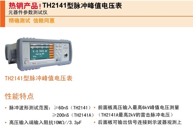 同惠多信号采样双接口测量仪TH2141 TH2141A型脉冲峰值电压测试仪