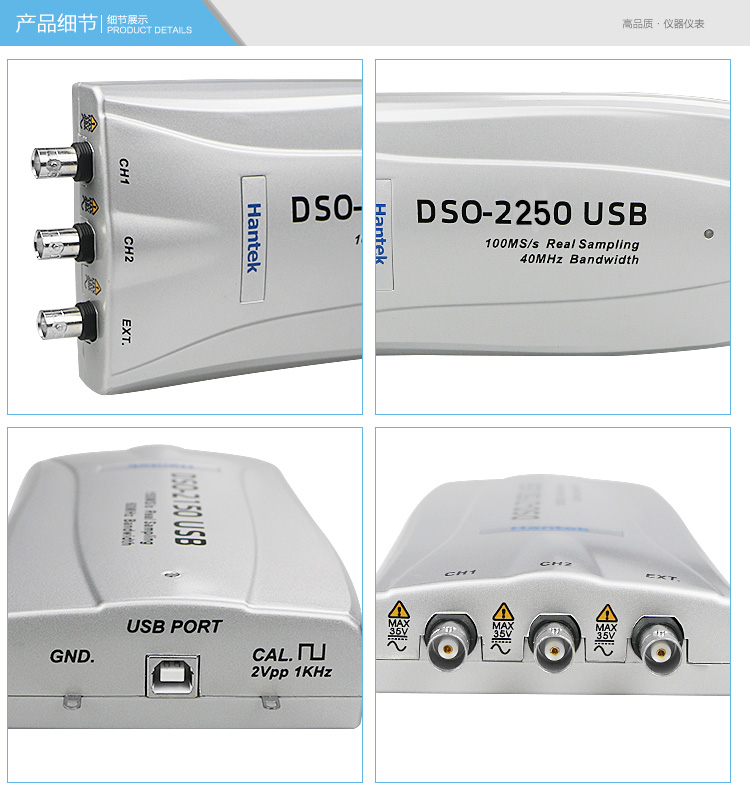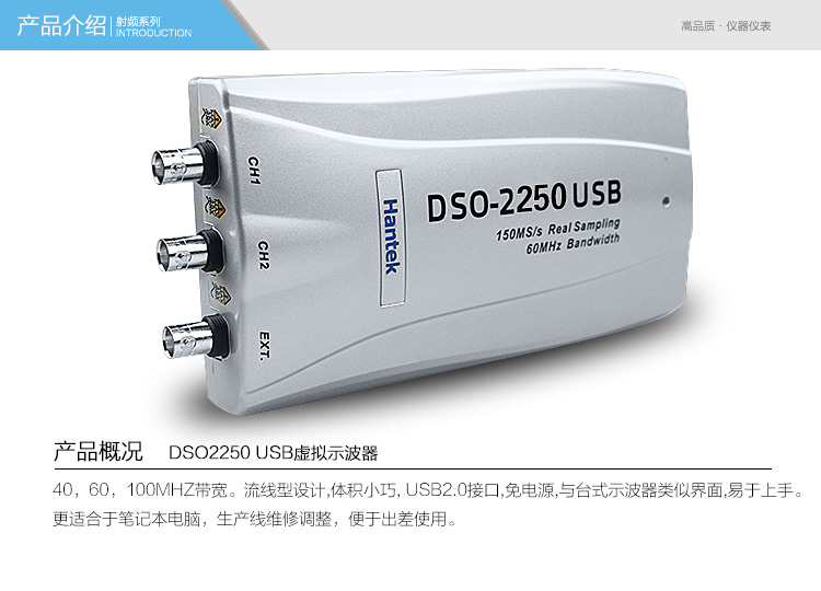 青岛汉泰DSO2250双通道虚拟示波器USB电脑维修示波器100M带宽