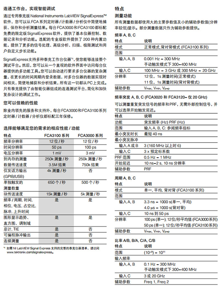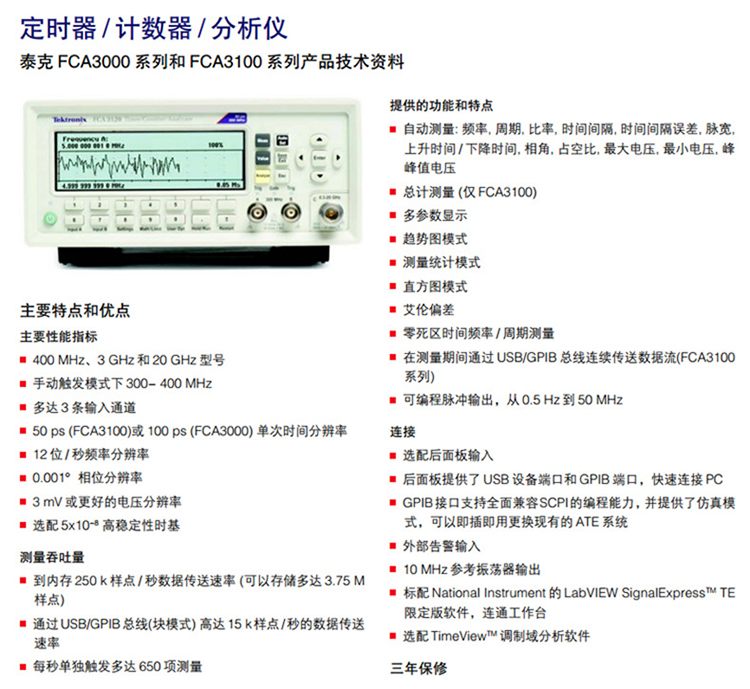 Tektronix泰克计时器/频率计/分析仪FCA3003