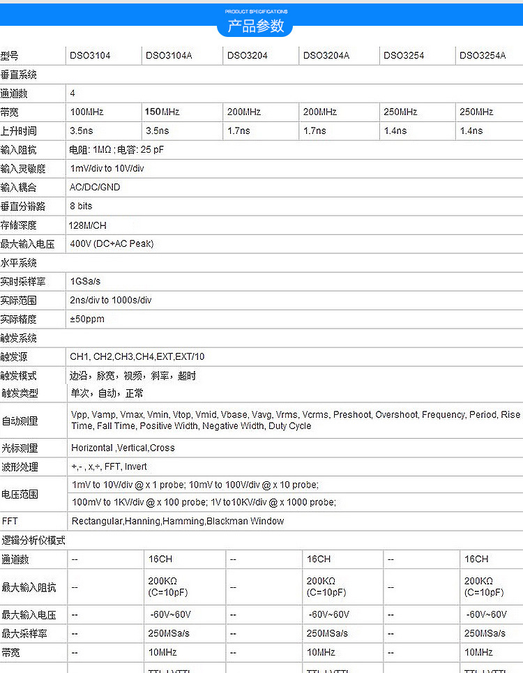 DSO3254 DSO3254A 250M 示波器 信号发生器 逻辑分析仪 四通道