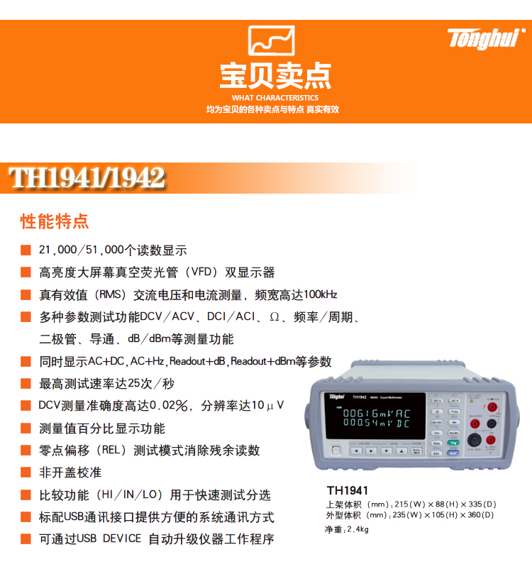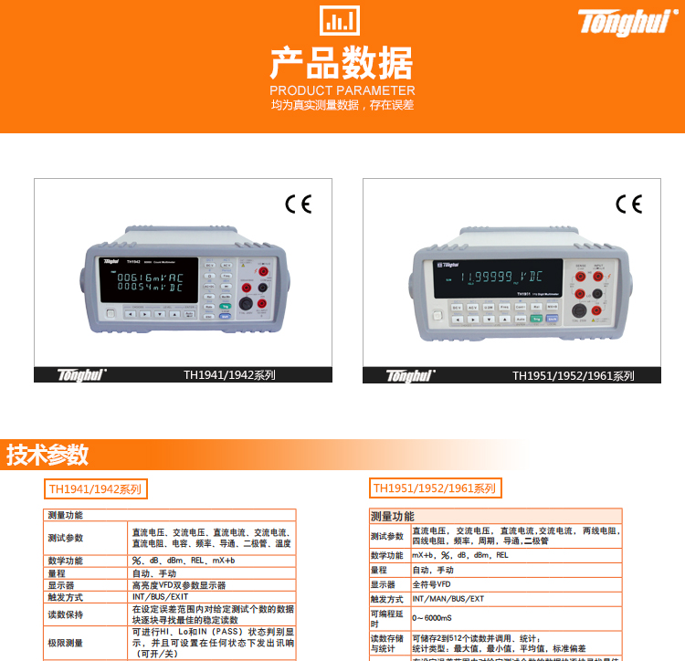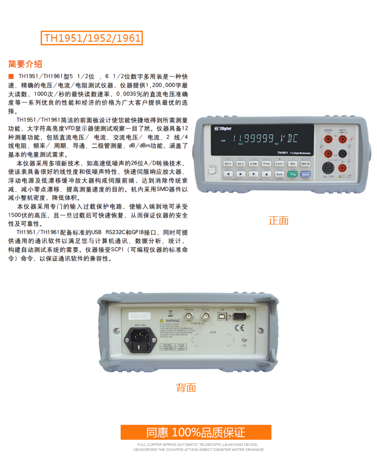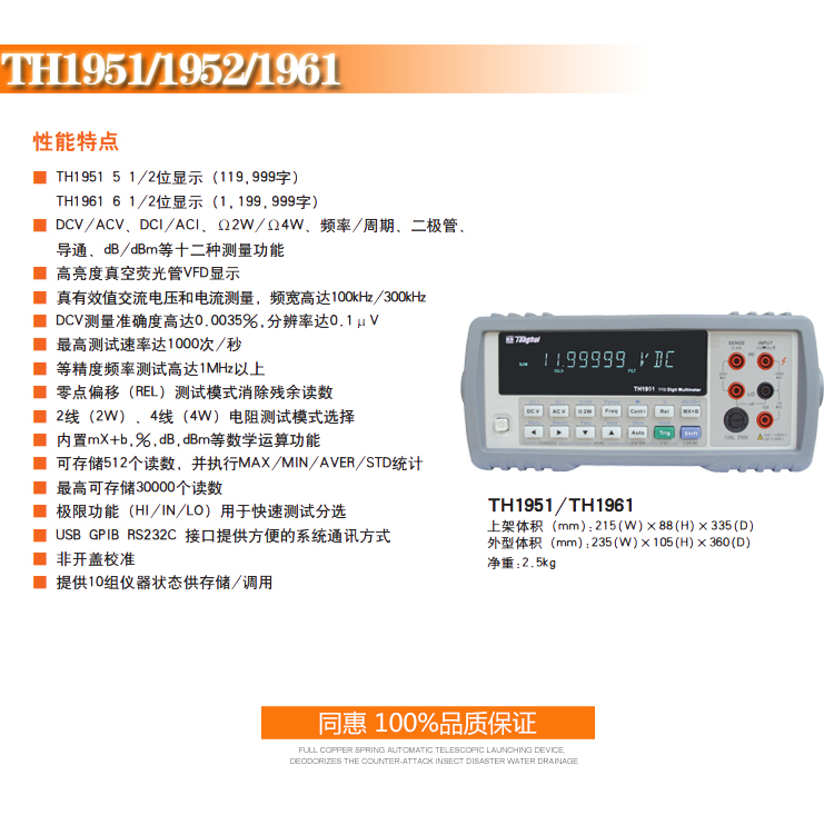 同惠TH1952真有效值4位半数字台式万用表TH1951五位半多用表6位半