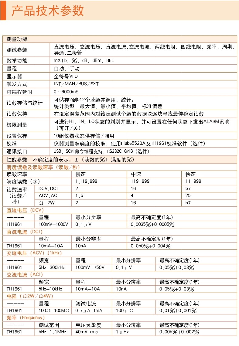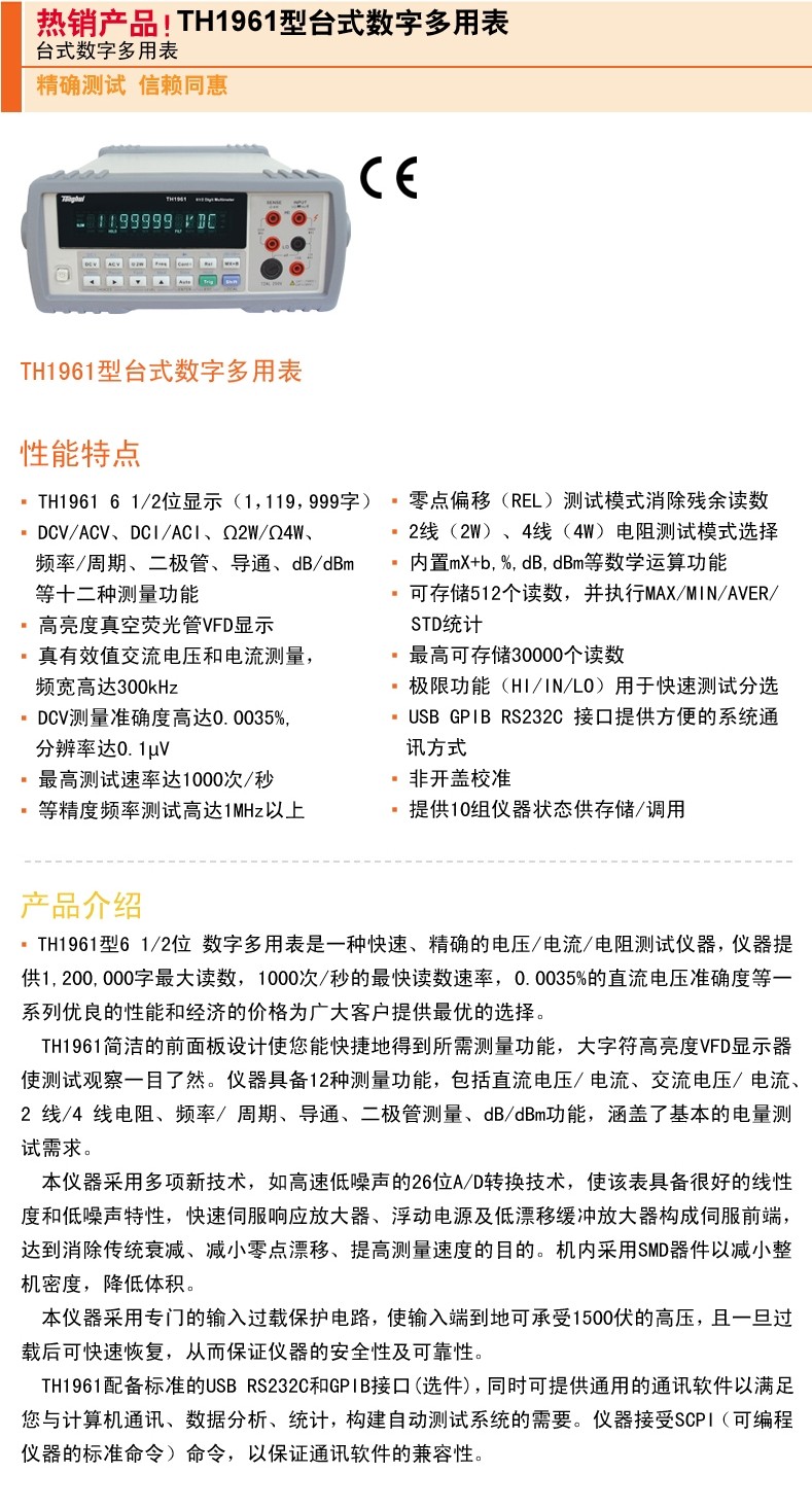 常州同惠台式数字万用表TH1961 真有效值多用表 电流/电阻测试仪