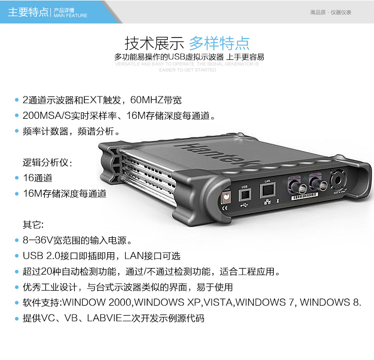 汉泰DSO3062L/DSO3062AL双通道虚拟示波器带16通道逻辑分析仪