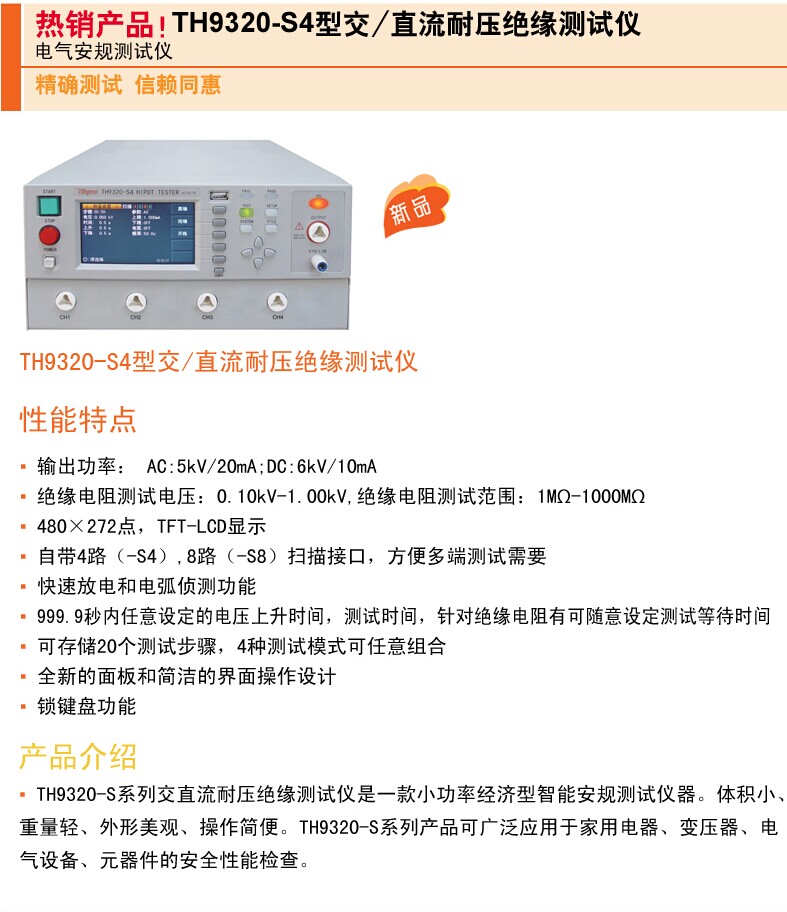 同惠TH9320S4A交直流耐压绝缘测试仪