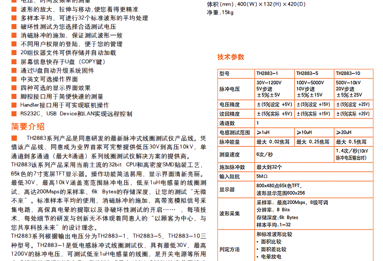 同惠 TH2883-5 /TH2883-10匝间绝缘脉冲式线圈测试仪