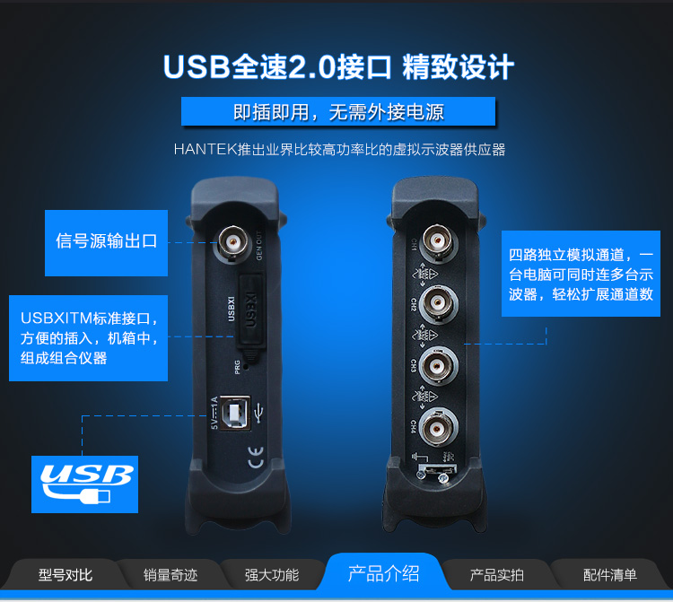 青岛汉泰Hantek6204BD示波器信号源发生器