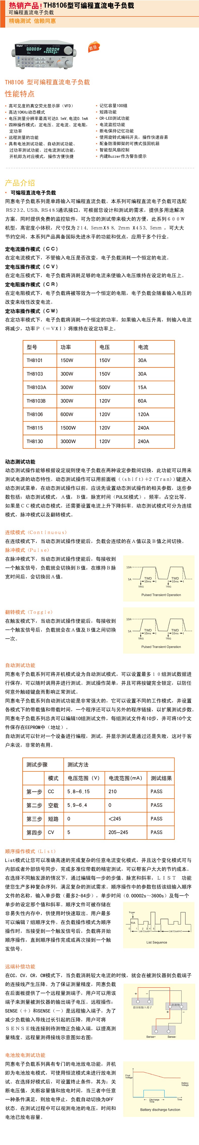 同惠TH8106可编程DC电子负载 120V/ 120A/ 600W