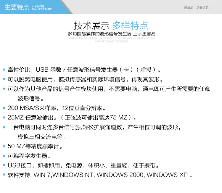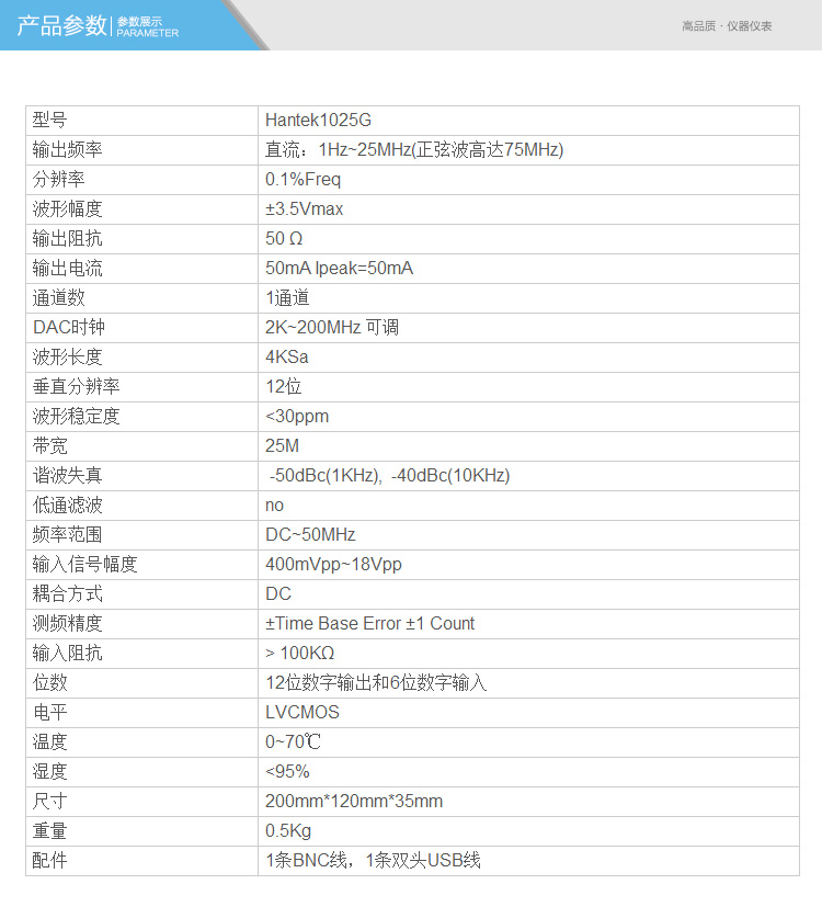 汉泰HANTEK1025G虚拟信号发生器USB函数任意波形信号发生器