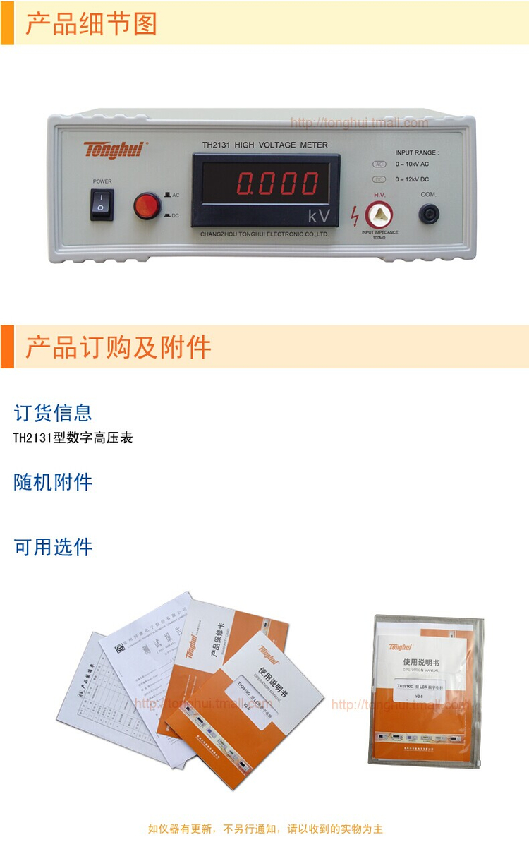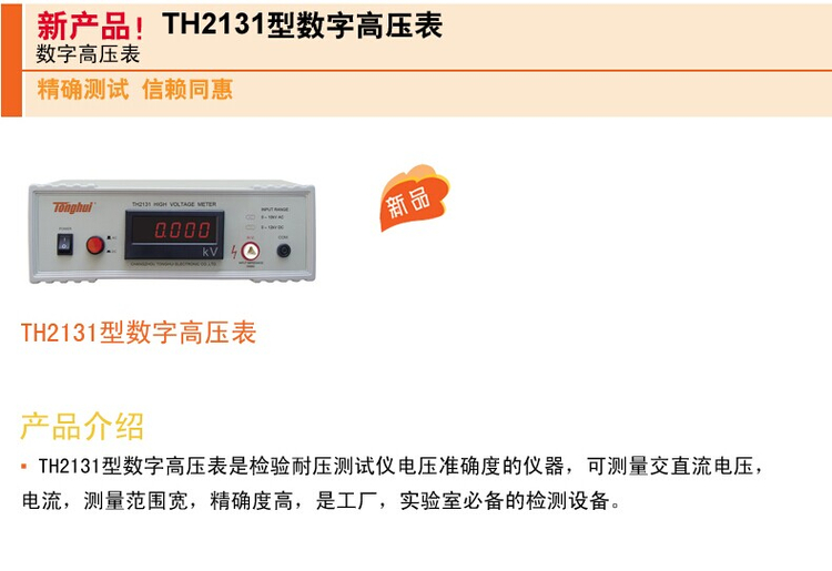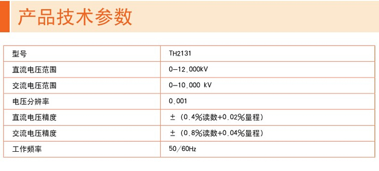同惠TH2131型数字高压表 DC 0-12kV AC 0-10kV 频率50/60Hz