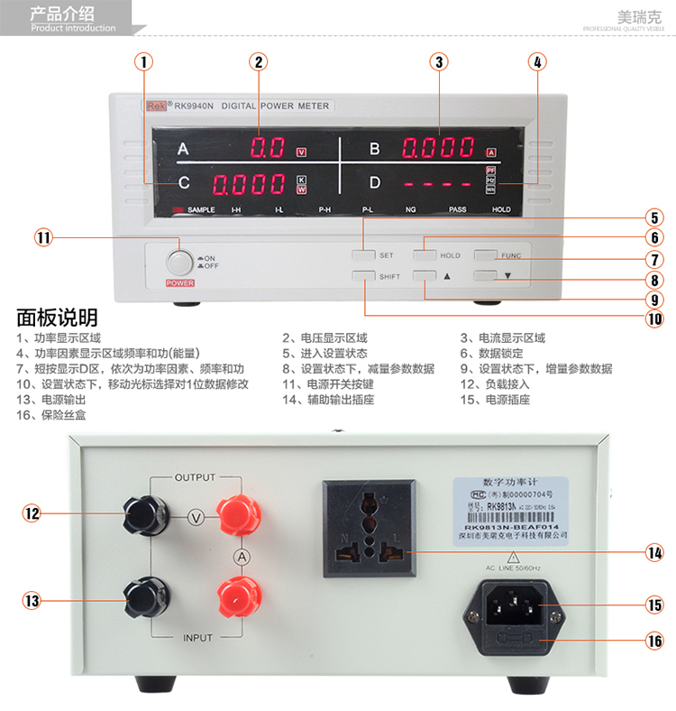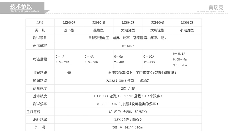 美瑞克ReK RK9940N 台式数字功率计 电参数测试仪 带电脑接口