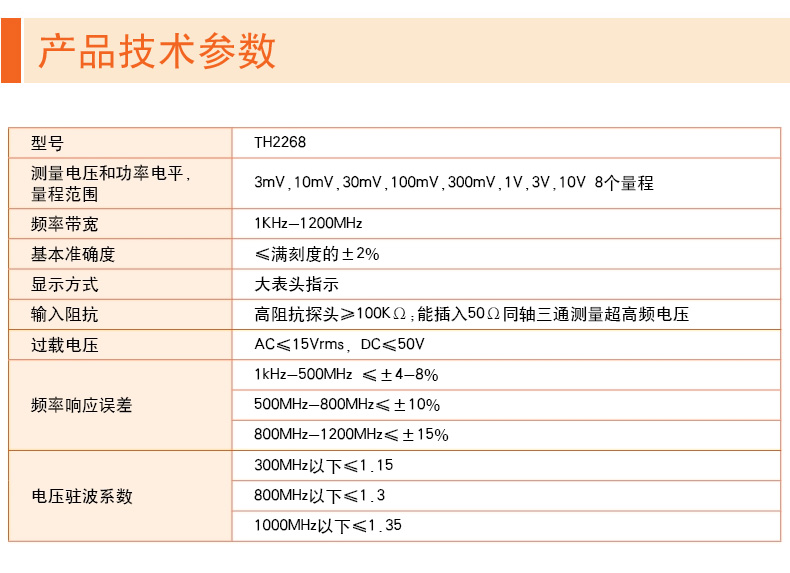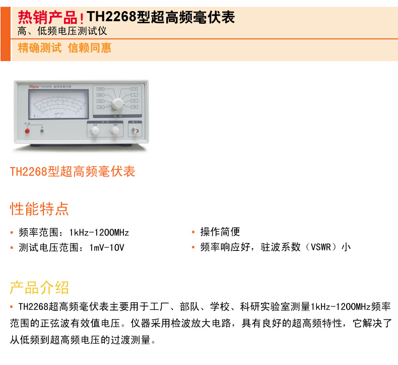 TH2268型高频数字毫伏表1kHz-1200MHz频率范围正弦波有效值电压
