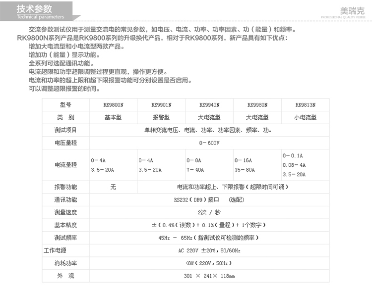 美瑞克RK9813N小电流报警型电参数测试仪 功率计 电量计 微功率计