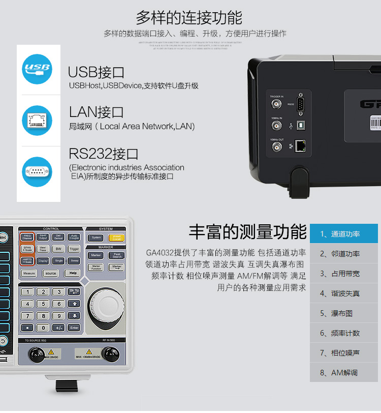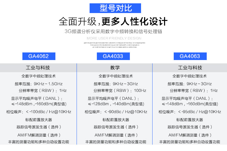 国睿安泰信GA4063频谱分析仪频率100KHz-3GHz可调谐至9KHz 现货