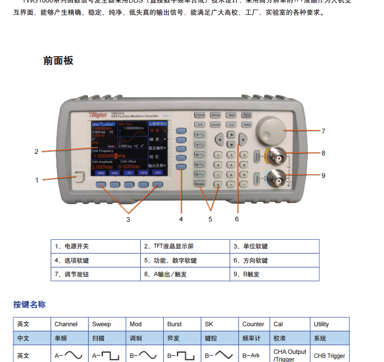 同惠高精度任意波形函数信号发生器TWG1010A方波脉冲信号源