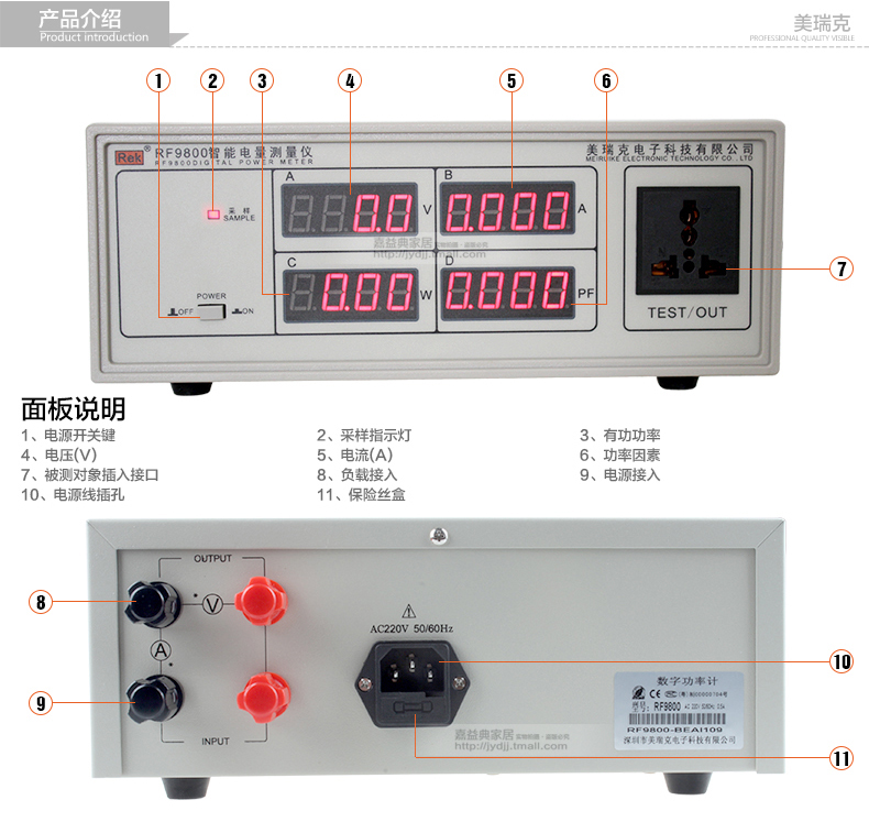 美瑞克 RF9901 数显频率功率计 智能电参数测试仪