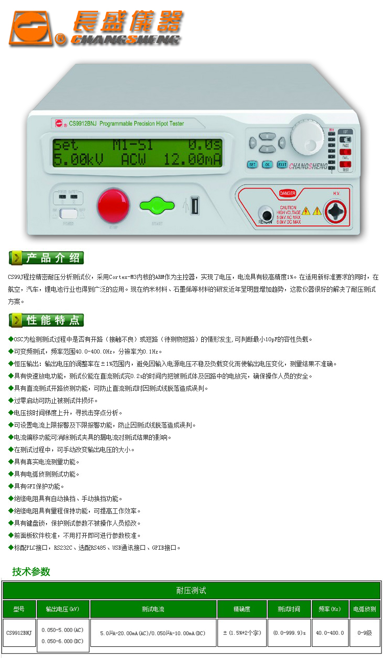 南京长盛 程控精密耐压分析测试仪CS9912BNJ