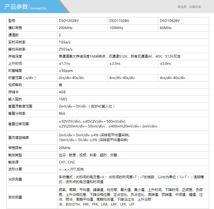 • 选择型号: DSO1202BVDSO1102BVDSO1062BV