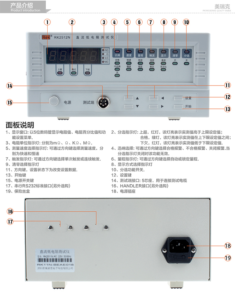 美瑞克ReK RK2512N 1μΩ~2MΩ 直流低电阻测试仪