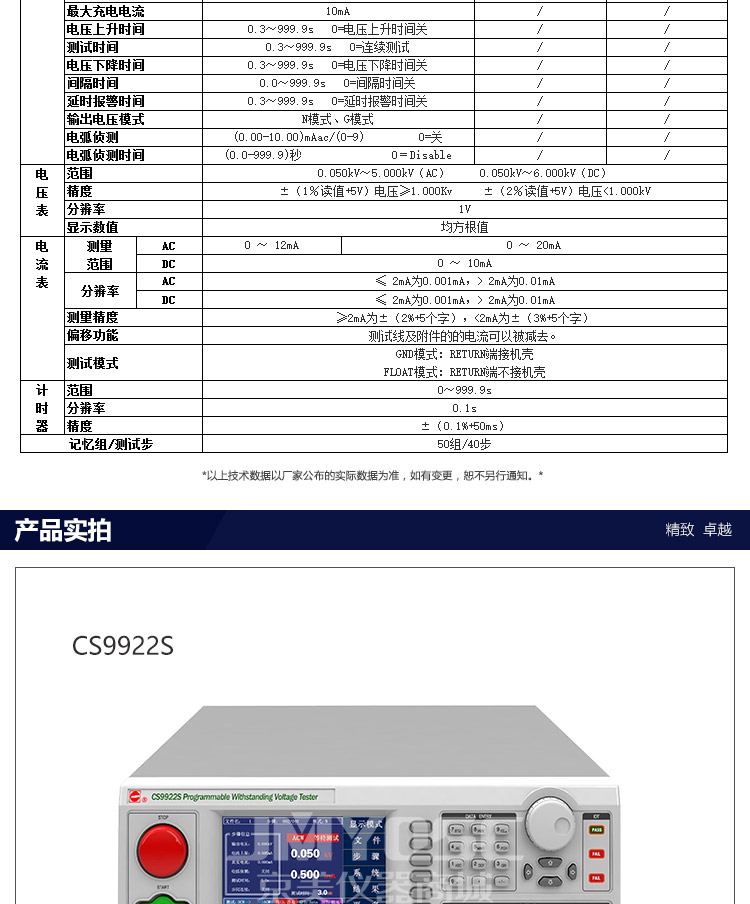 长盛CS9922HS程控绝缘耐压测试仪实时显示击穿电流电压值