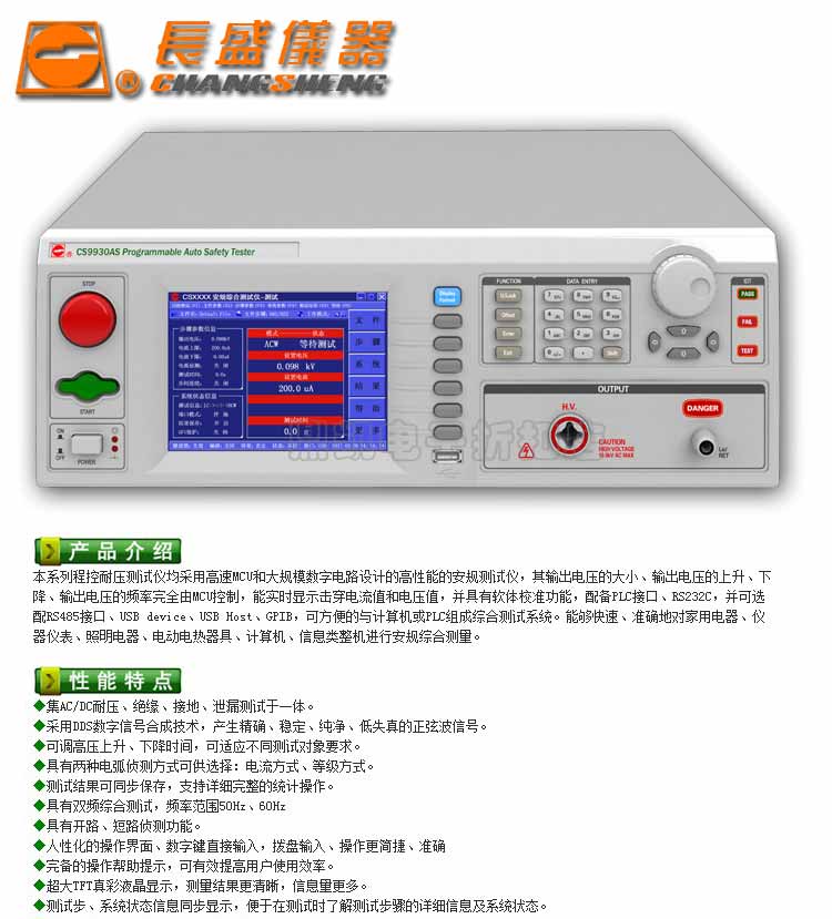 南京长盛CS9930AS程控安规综合测试仪耐压绝缘接地泄露四合一