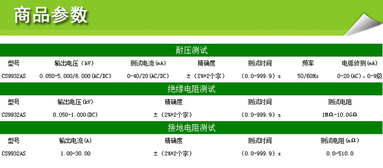 长盛CS9931A/S9932AS通用安规综合测试仪耐压绝缘漏电接地测试仪