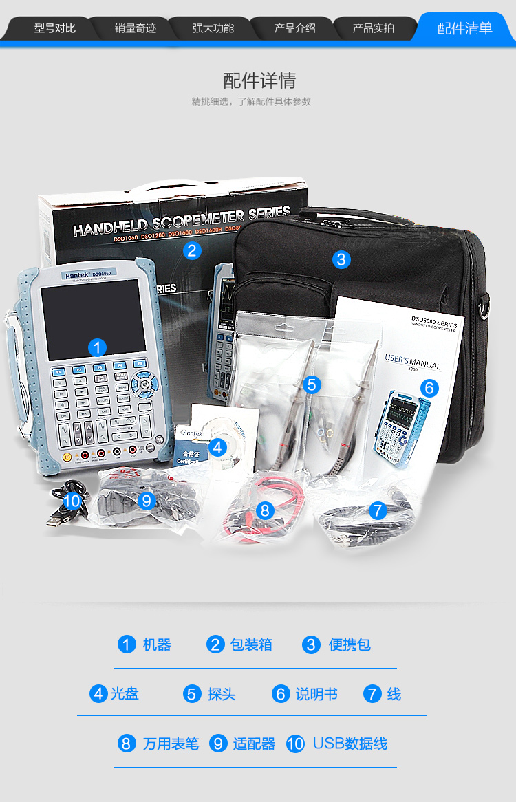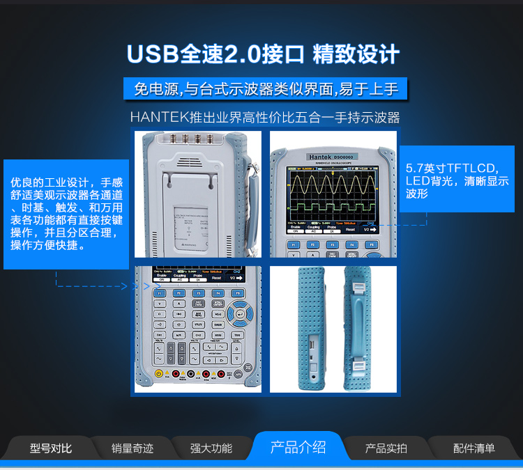 Hantek汉泰DSO8060手持示波表60M数字存储示波器万用表信号发生器