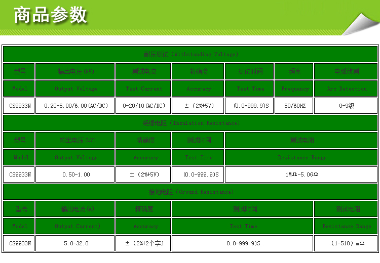 长盛程控安规综合测试仪 CS9933N 耐压绝缘接地三合一