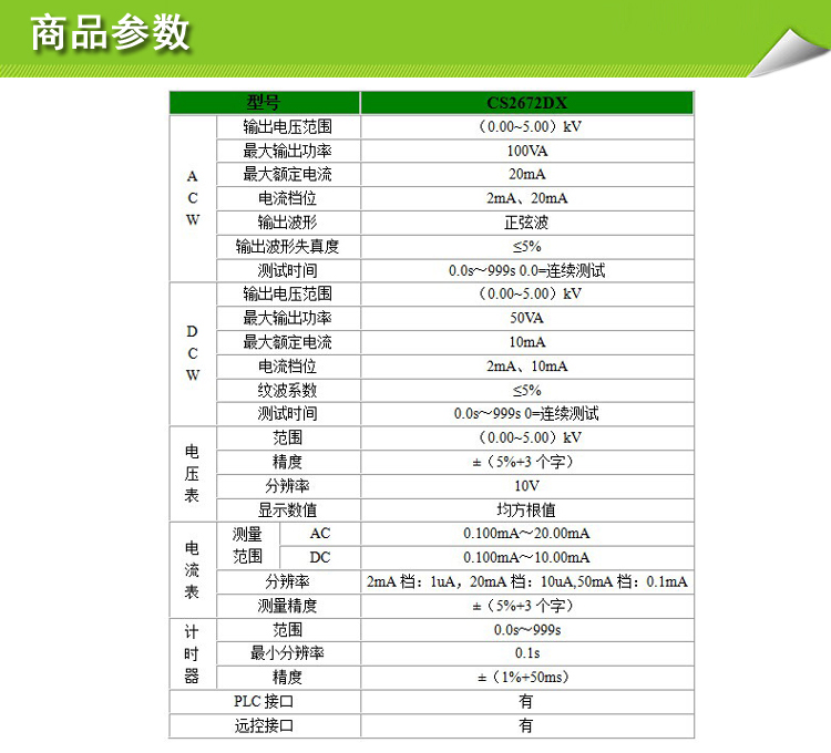 南京长盛耐压测试仪CS2672DX CS2673X实验仪器漏电电流20MA