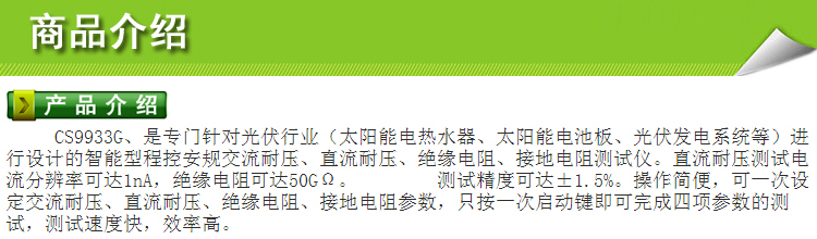 南京长盛光伏综合测试仪CS9933GS CS9933G CS9933G-4耐压绝缘接地