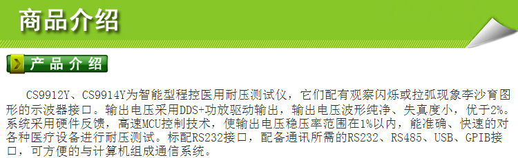 南京长盛 智能型程控耐压测试仪CS9912Y CS9914Y