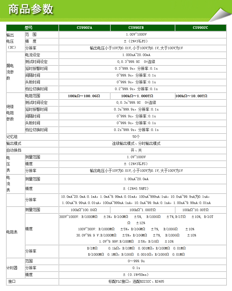 长盛程控电容器漏电流绝缘电阻测试仪CS9902AS CS9902BS CS9902CS