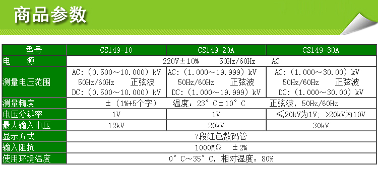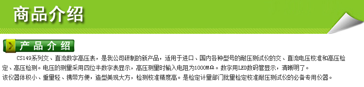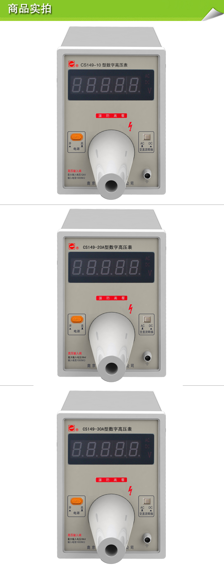 南京长盛 数字高压表CS149-10 CS149-20A CS149-30A