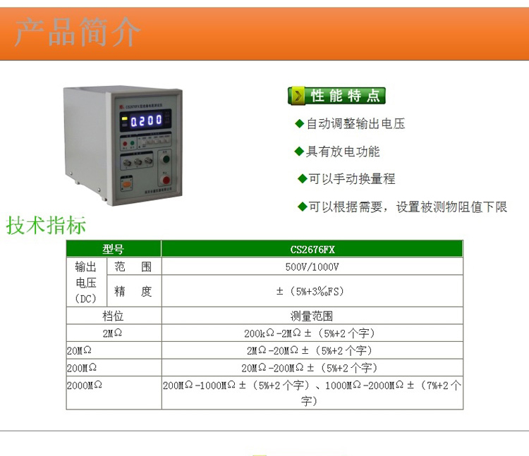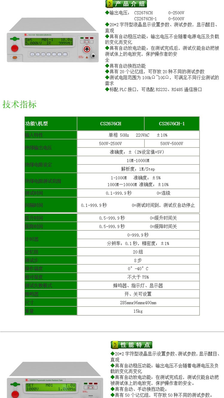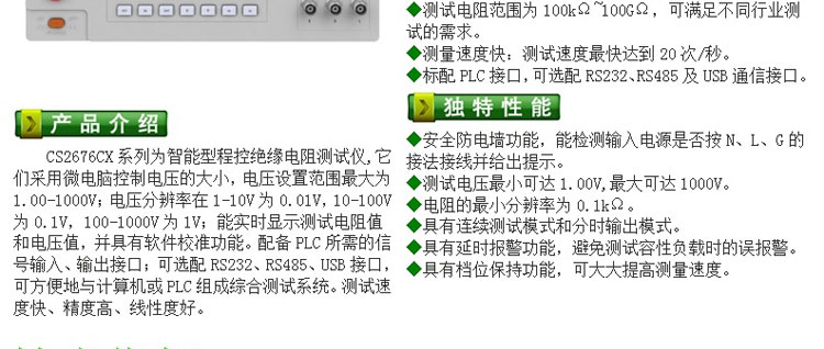 长盛CS2676CH/-1程控绝缘电阻测试仪原装