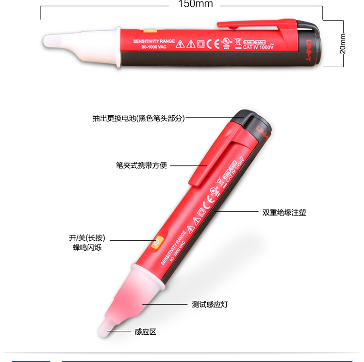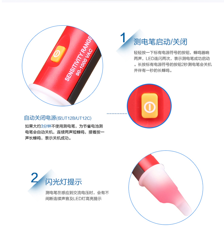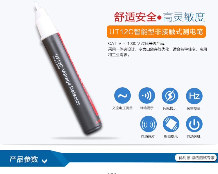 优利德UT12A智能B非接触C多功能数显感应测试电笔电工感应笔