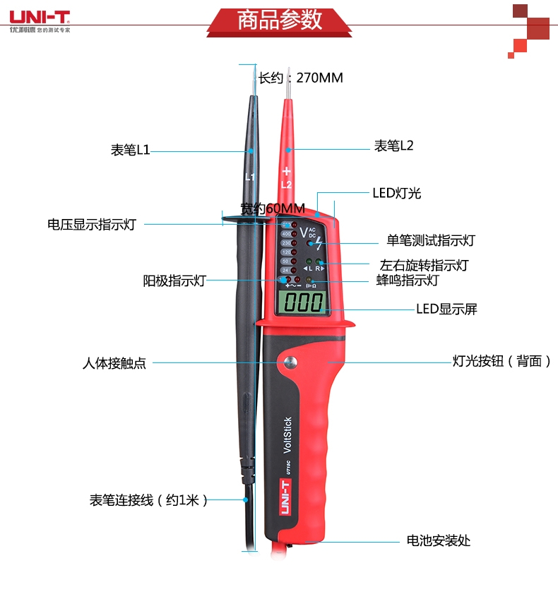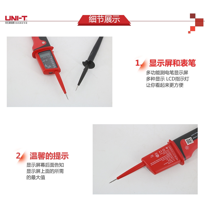 优利德防水多功能测电笔通断测试LCD电压数字显示电工验电器UT15C/UT15B