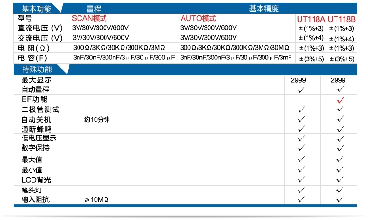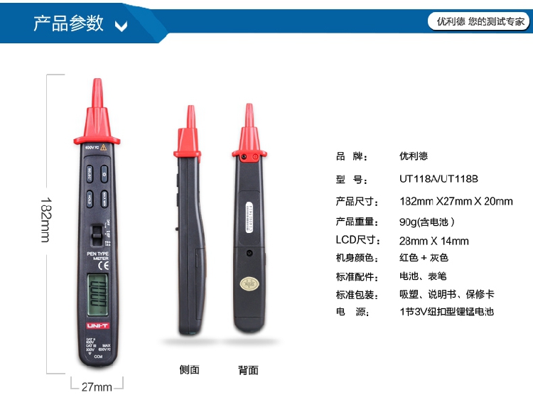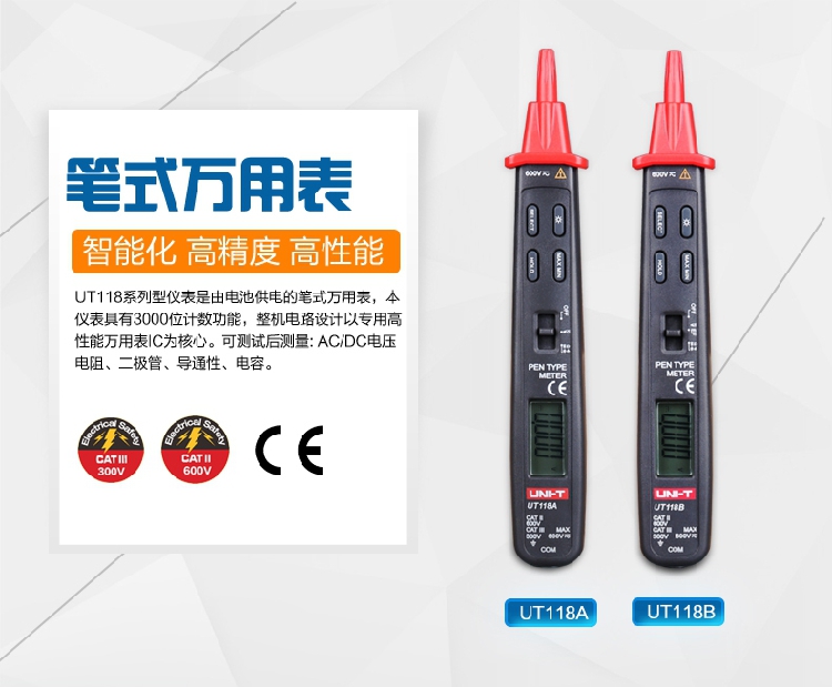 优利德笔式数字万用表UT118B数显高精度电工维修表