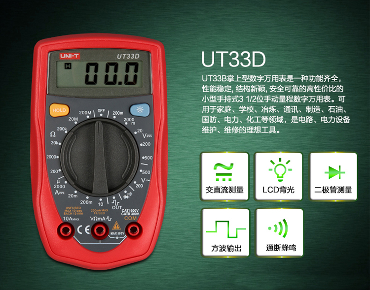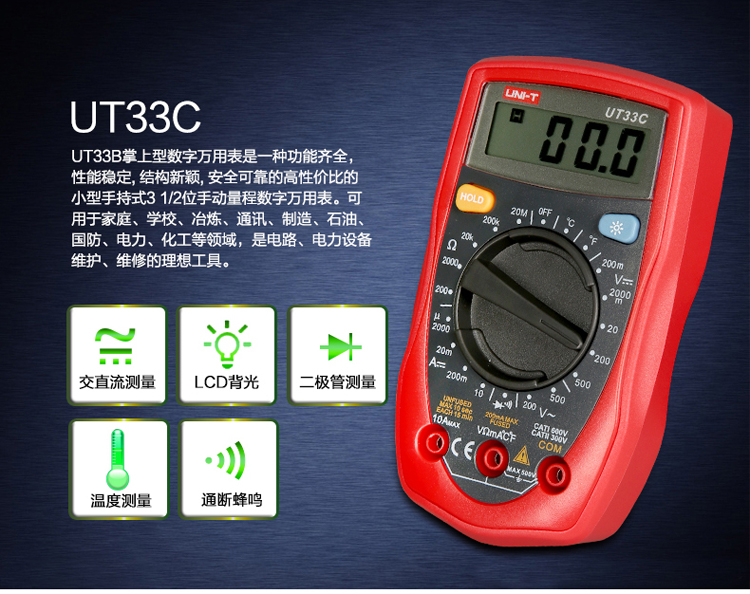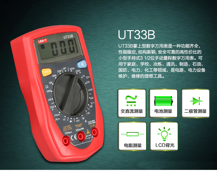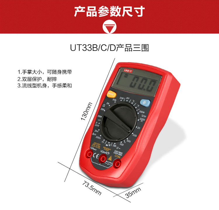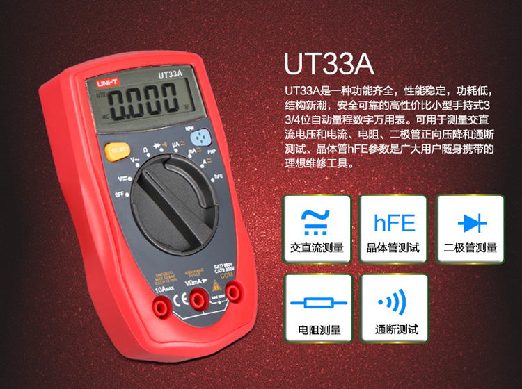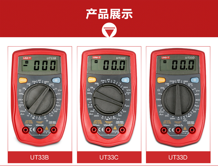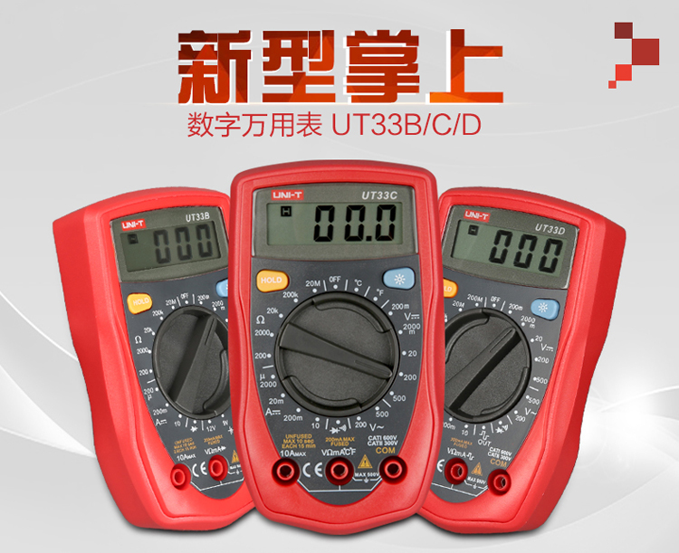 UNI-T优利德数字万用表UT33A/UT33B/UT33C/UT33D掌上袖珍万用表