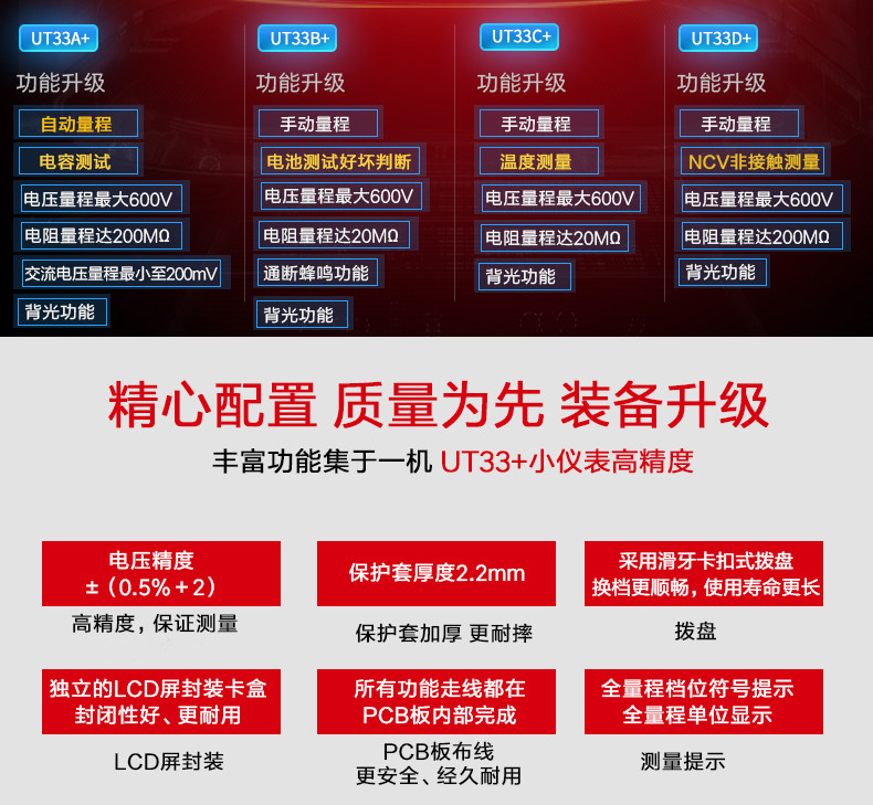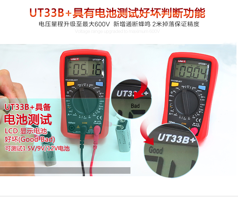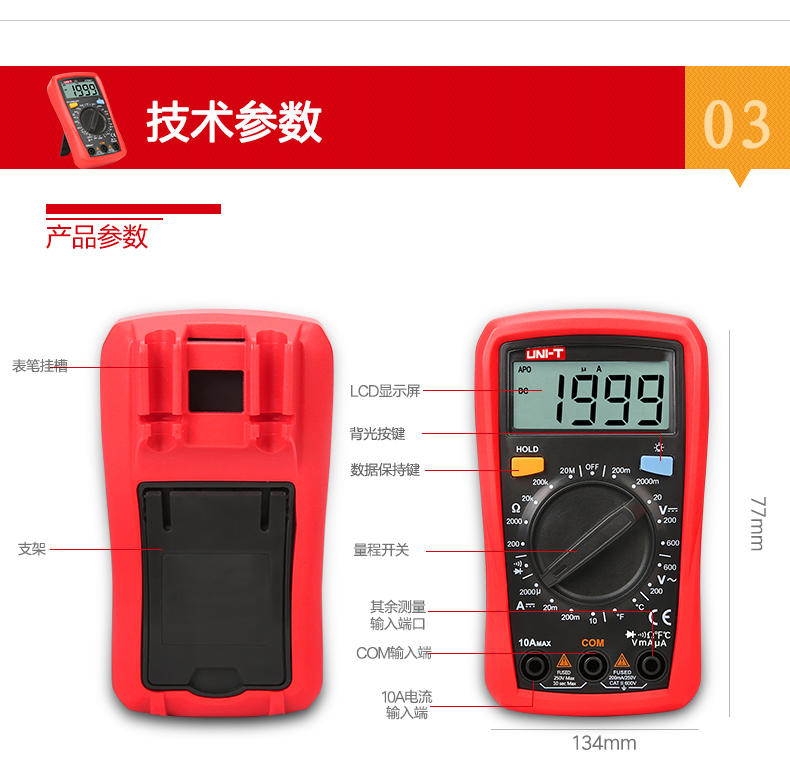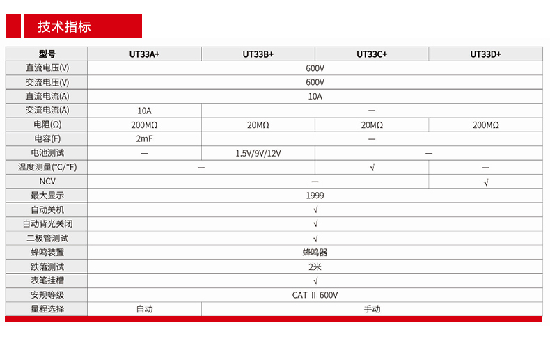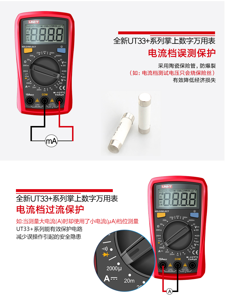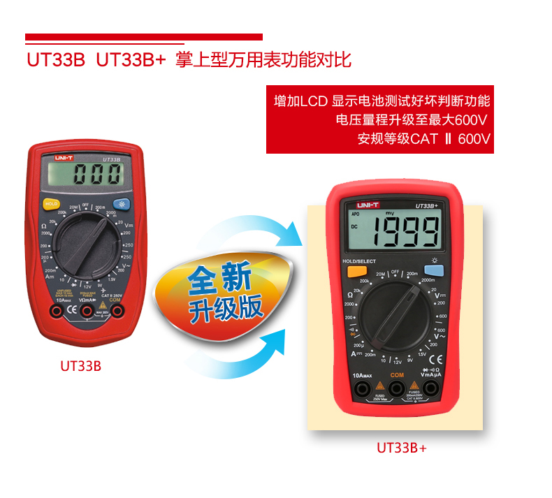 优利德UT33A+/B+/C+/D+数字万用表掌上袖珍型高精度表