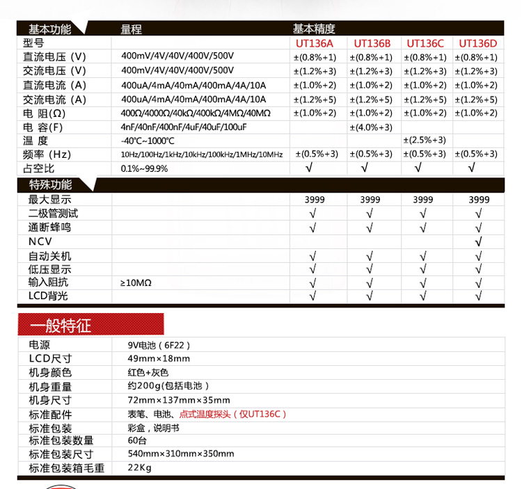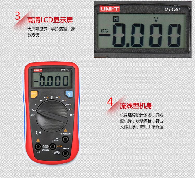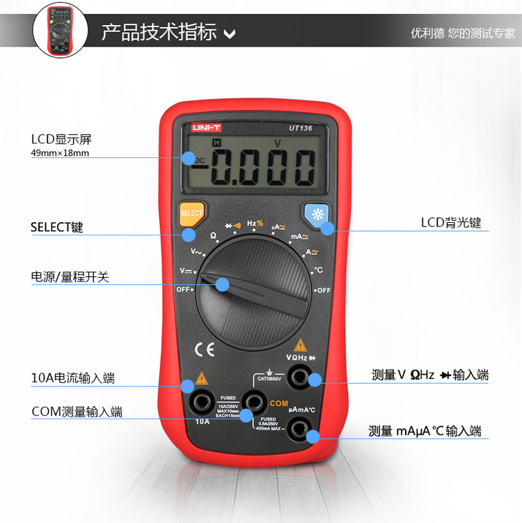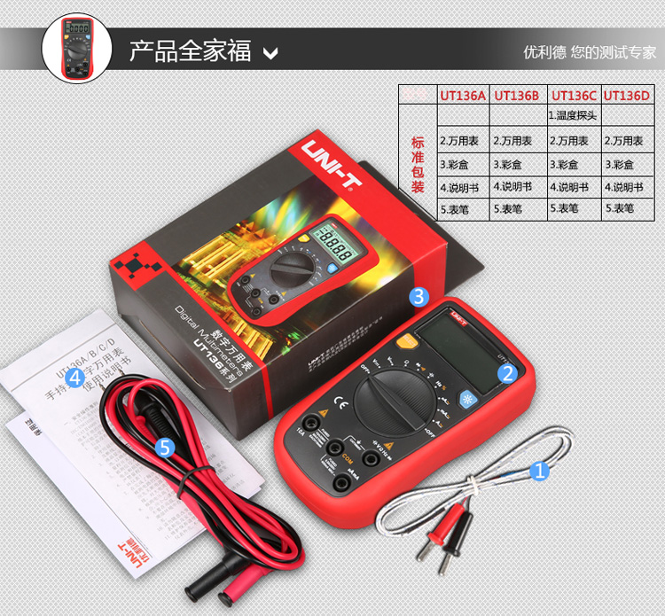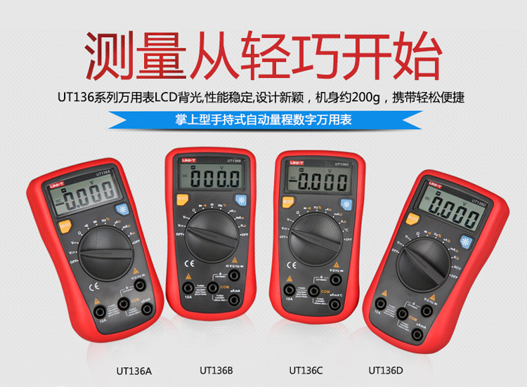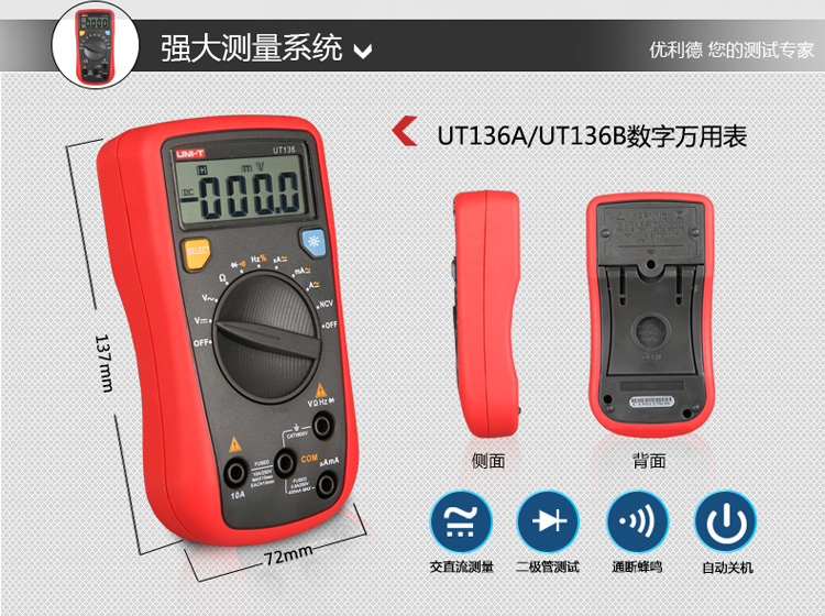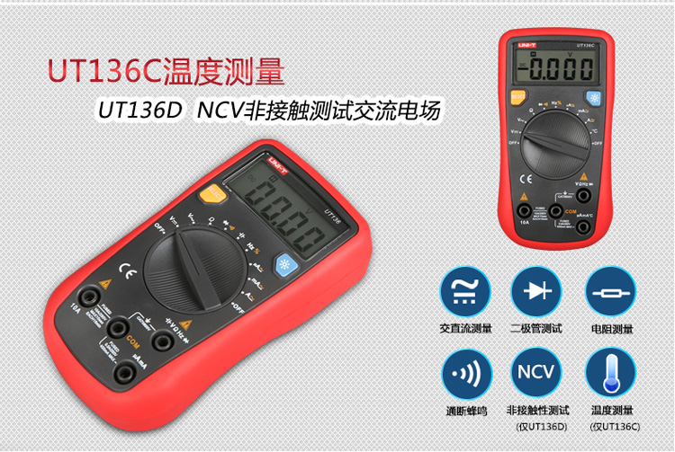 优利德UT136A/UT136B/UT136C/UT136D数字万用表防烧万用表表